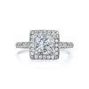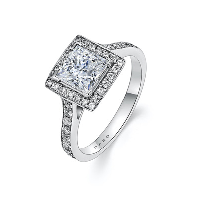 Exuding architectural elegance with timeless brilliance, the ORRO Abbie Ring is a statement of modern romance. At its heart is a captivating 1.25ct Princess cut diamond, its sharp angles and crisp facets framed in a luminous halo of pavé-set round brilliant stones. The halo's squared silhouette offers a striking contrast to the soft curves of the band, blending bold geometry with classic refinement.