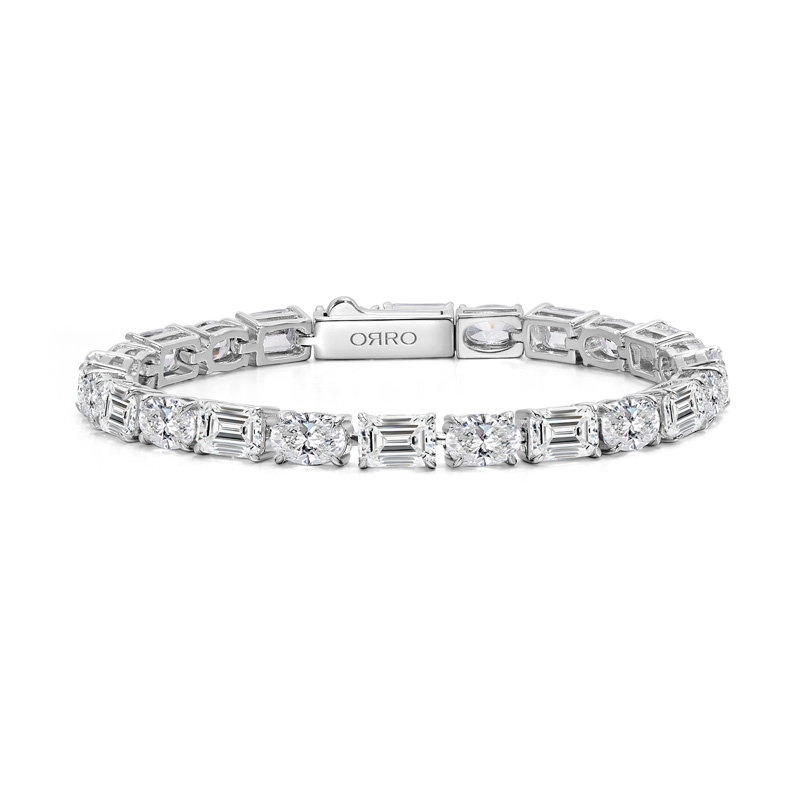 The ORRO Basilina Bracelet is a striking interpretation of timeless elegance, uniting the refined symmetry of emerald-cut stones with the fluid brilliance of oval-cut diamonds. Alternating in a graceful rhythm, each stone is meticulously set to enhance its individual beauty while contributing to the bracelet's harmonious balance and captivating sparkle.