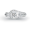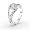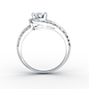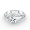 This unique piece features a single three-quarter carat round brilliant cut stone in a three-prongs setting with dazzling round cut side stones forming a loop around the center. The other side of the band holds 2 rows of round brilliant cut stones in a channel-like setting. Perfect for that touch of glamour for a night out.