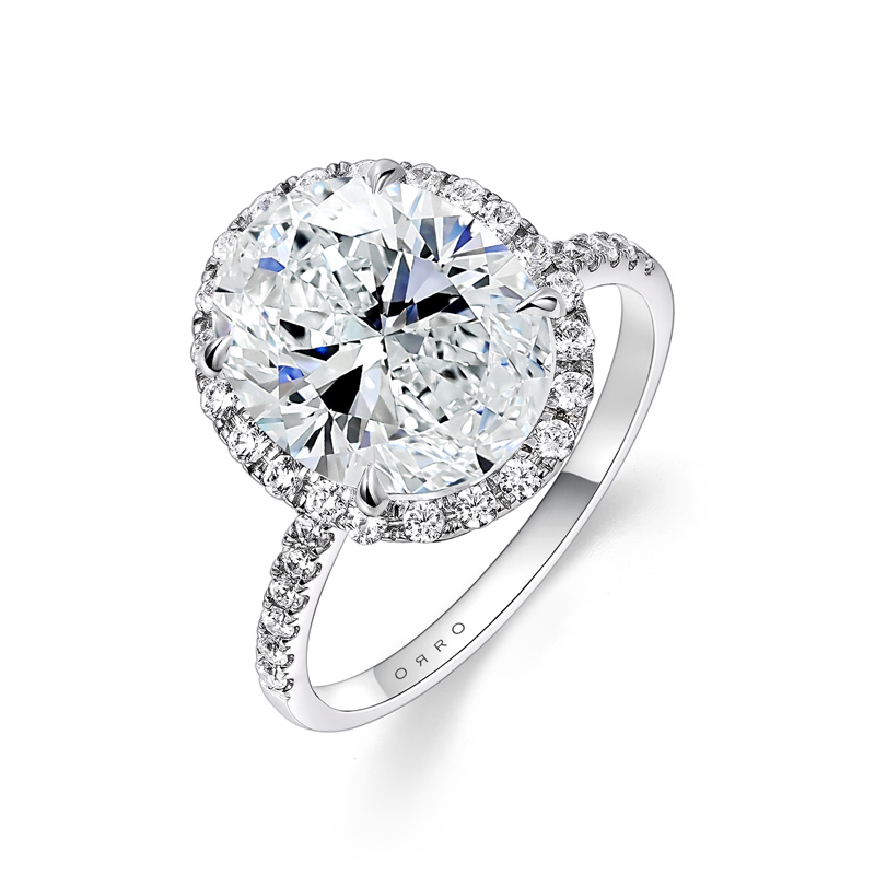 Comes in a 5.00ct or 9.50ct Brilliant Oval Cut center stone.