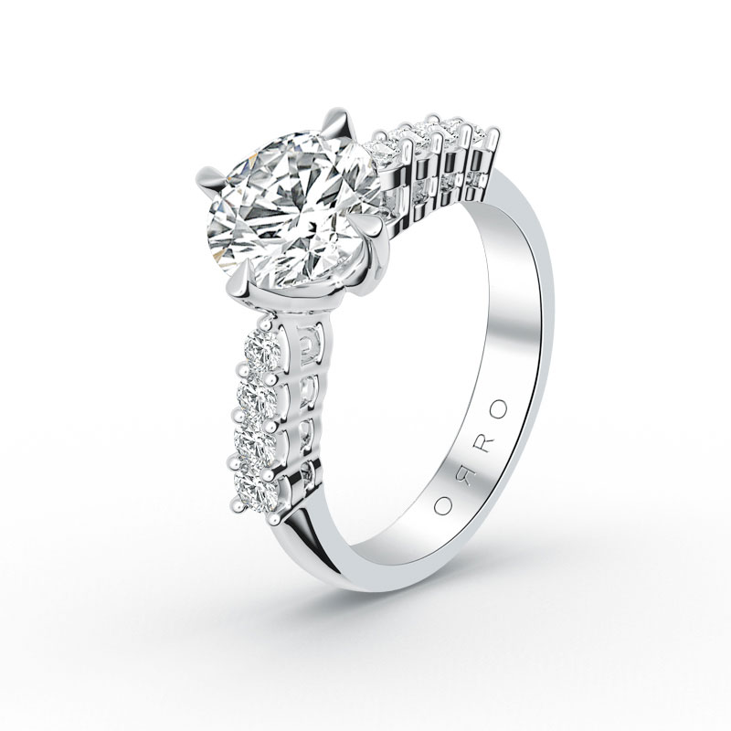 The ORRO Royal 4 prong Centred Ring is truly a timeless beauty of its kind. Centred with a 1.0ct round brilliant cut stone with claw shaped prongs, accented with another half band of jewels; This ring exudes an air of self-confidence on the wearer that one can only hope for.